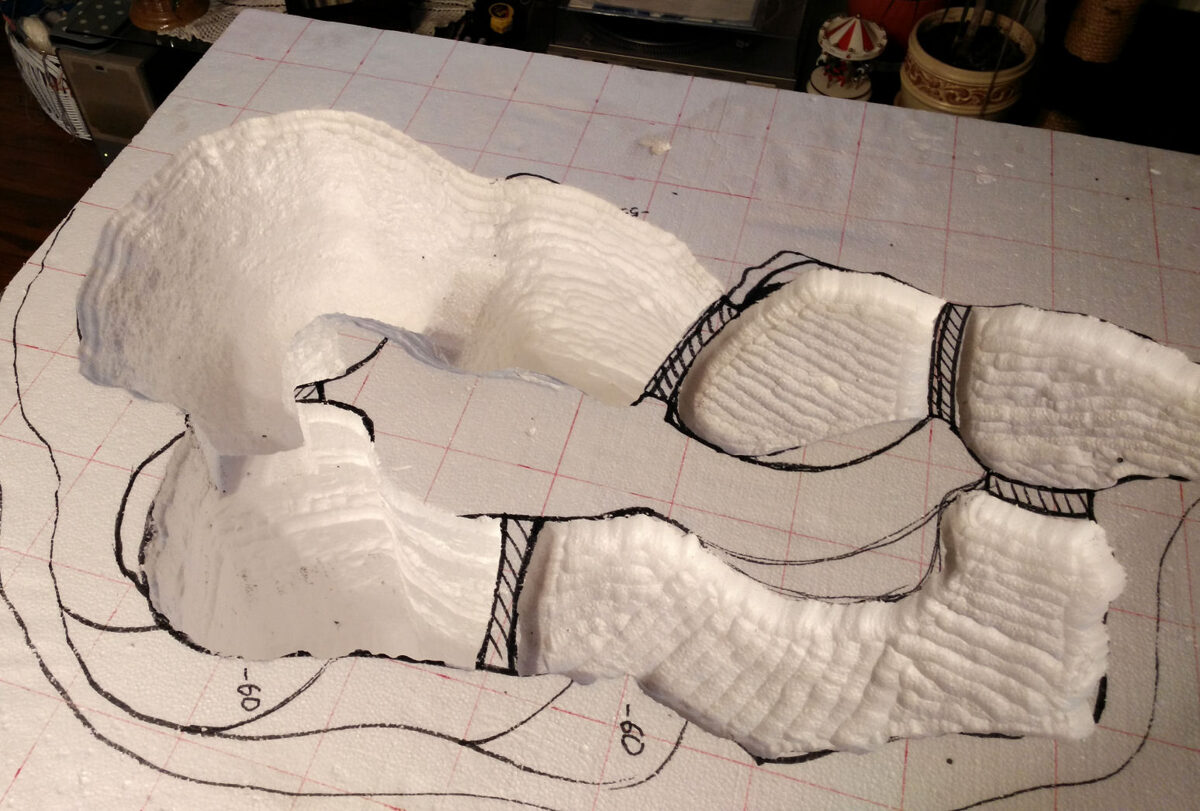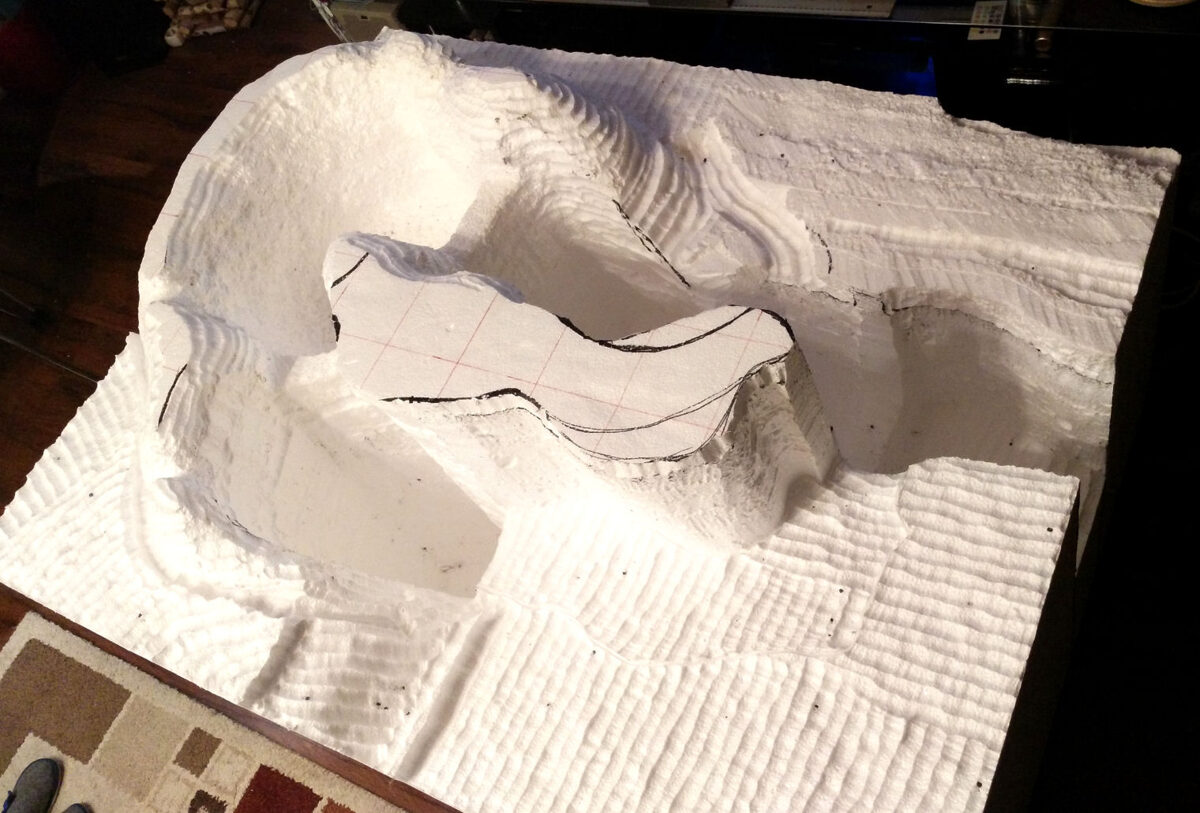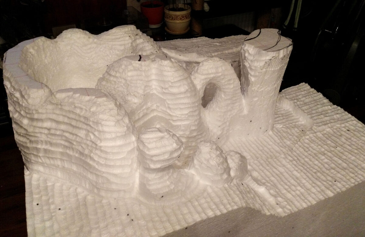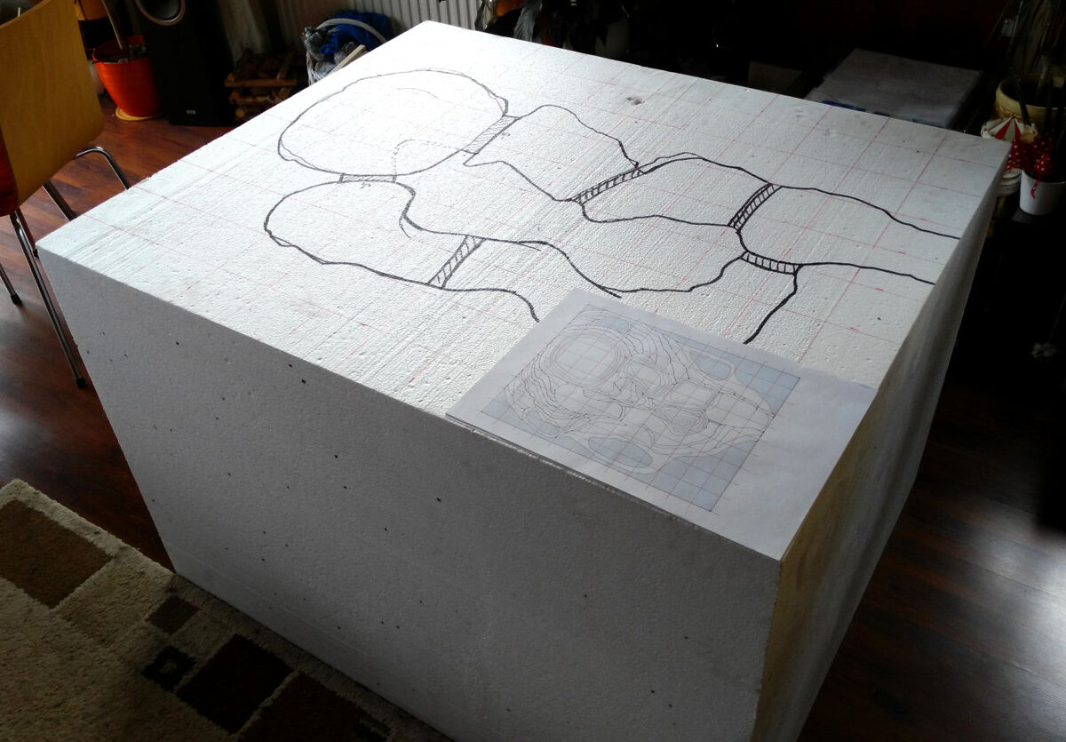 - a single block of styrofoam, size used in presented arragement was 120x100x80cm