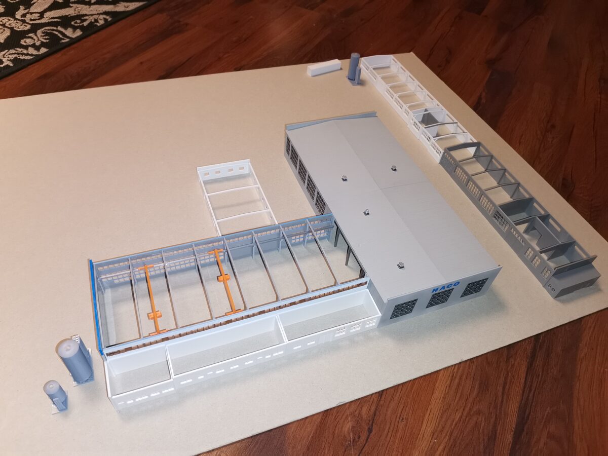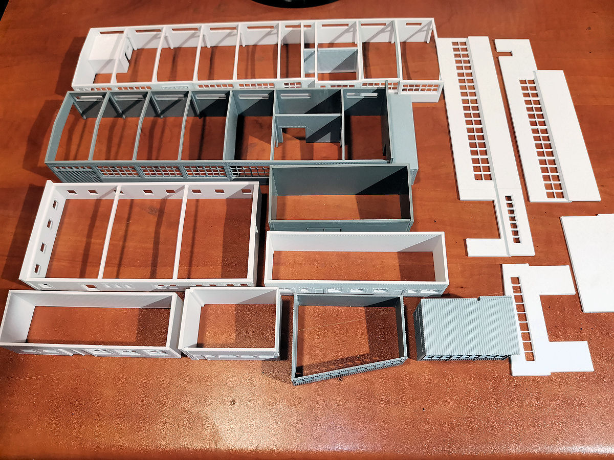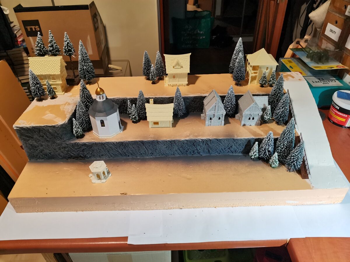 - H0 scale Buildings: 3D print, models from Thingiverse, except carousel